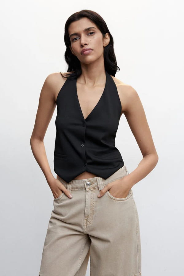 Gilet noir de costume emmanchures américaines à boutons de Mango