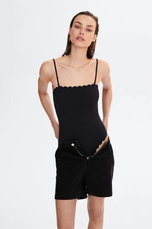 Maillot de bain noir texturé et festonné de Mango