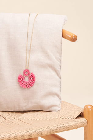 Collier sautoir rose effet raphia de La Fée Maraboutée