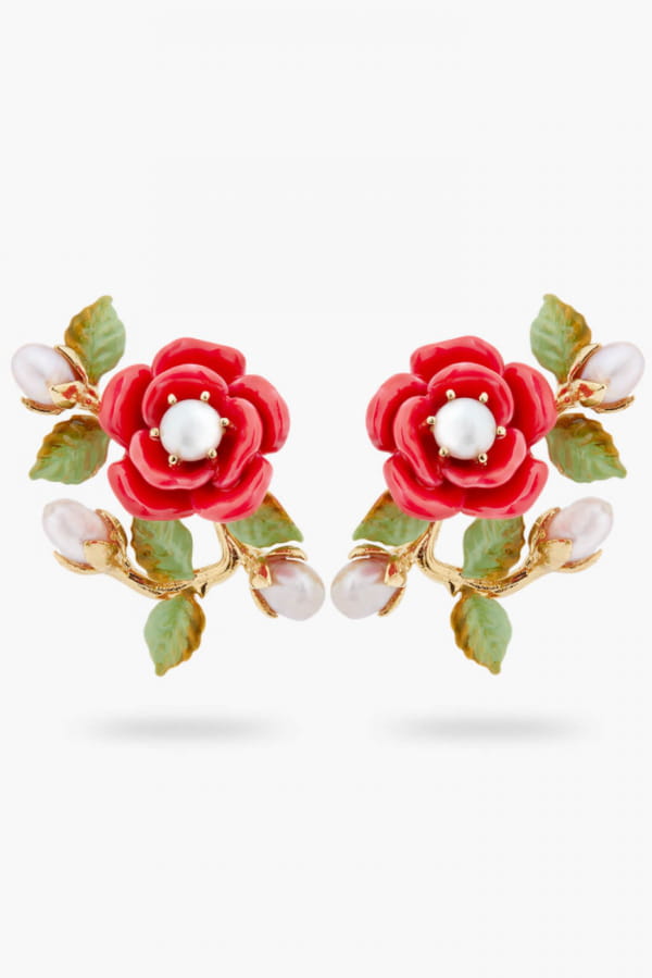 Boucles d'oreilles tiges branche de rose © Les Néréides