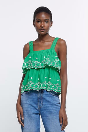 Caraco superposé en broderie verte de River Island