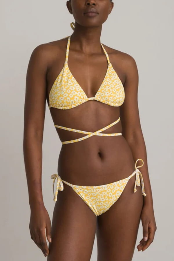 Haut de maillot de bain triangle jaune à imprimé fleurs de La Redoute