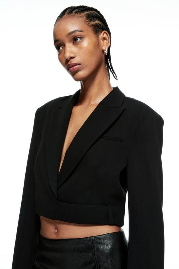 Blazer noir court à épaulettes et à décolleté plongeant de H&M