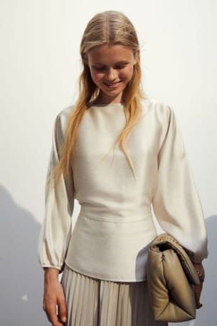 Blouse beige clair ajustée à la taille en crêpe de satin de H&M