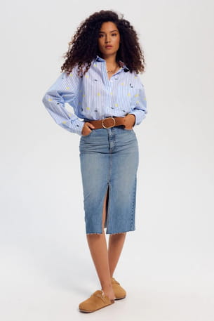 Chemise large rayée et brodée