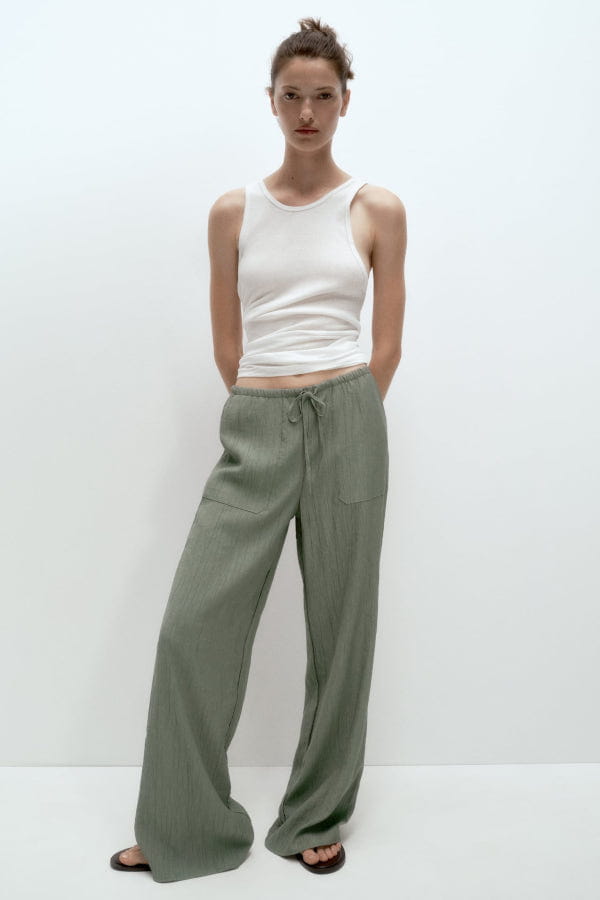 Pantalon kaki clair taille mi-haute élastique de Zara