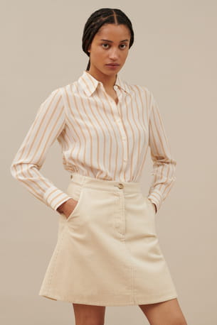 Jupe courte beige en velours côtelé de Comptoir des Cotonniers