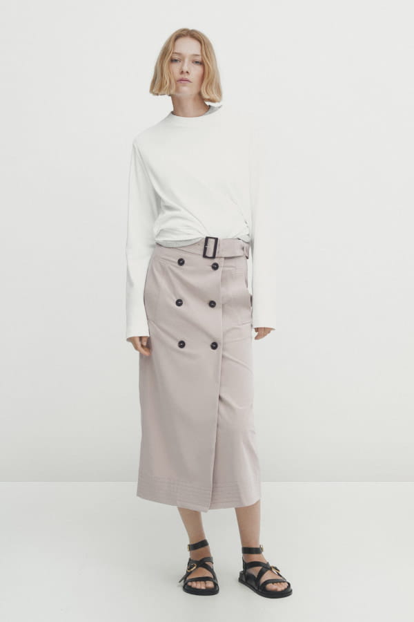 Jupe midi à double boutonnage et ceinture de Massimo Dutti