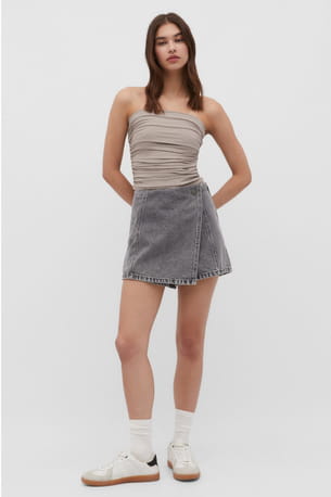 Jupe portefeuille courte en jean gris de Stradivarius