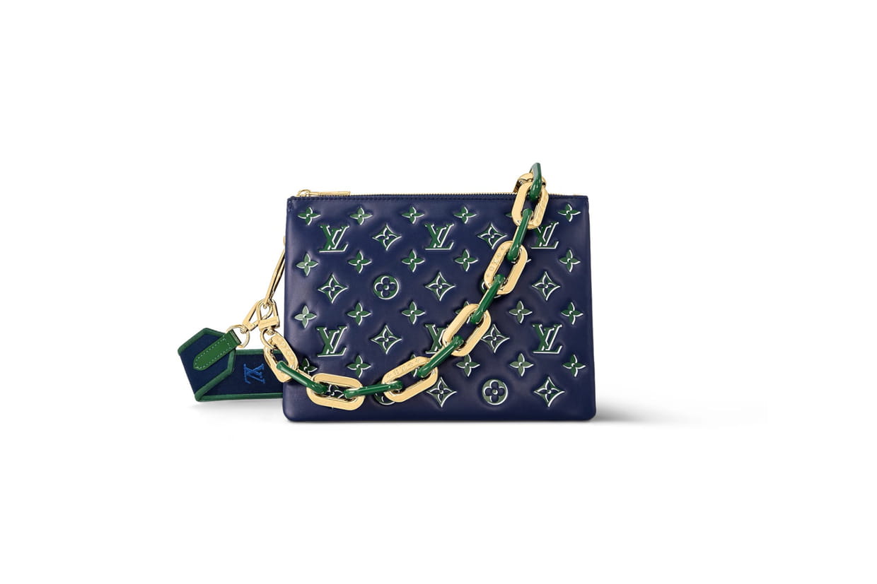 Sac à main vert et bleu à grosse chaîne "Coussin" de Louis Vuitton
