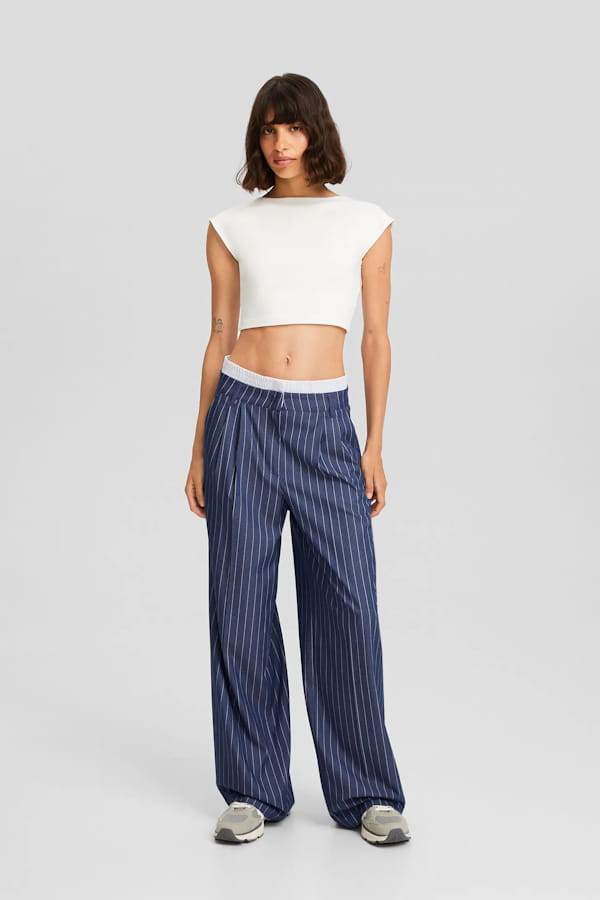 Pantalon de tailleur bleu à rayures blanches de Bershka