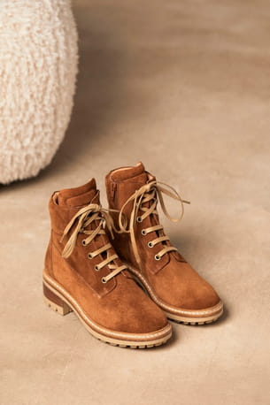 Bottines marron en velours à semelles crantées "Amethys" de Mellow Yellow