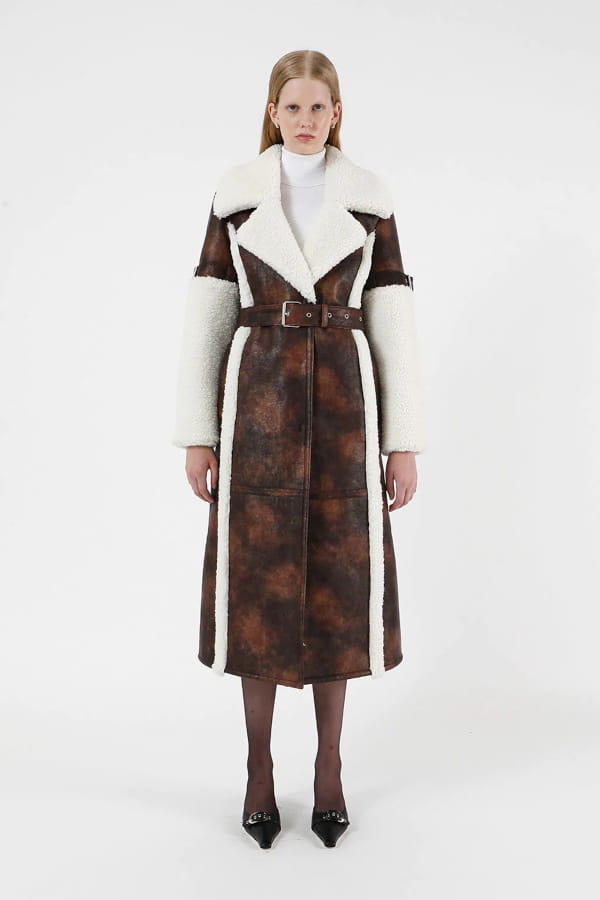 Manteaucontrasté chocolat et ivoire avec ceinture réglable "Raquel" d'Apparis