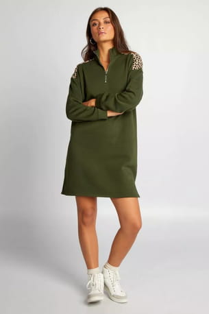 Robe sweat kaki avec détail léopard de Kiabi