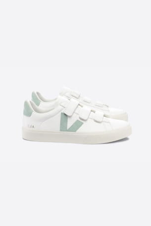 Baskets blanches citadines à scratchs et à détails matcha de Veja
