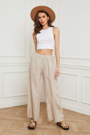 Pantalon beige large en lin de Joséfine Paris