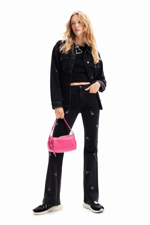 Jean noir flare à fleurs de Desigual