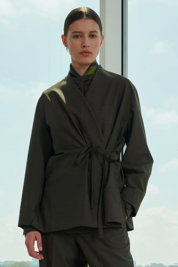 Veste kaki ceinturée en toile de laine souple "Umi" de Sœur