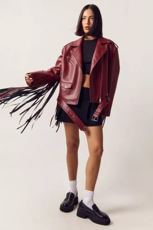 Veste biker en similicuir bordeaux à franges de Nastygal
