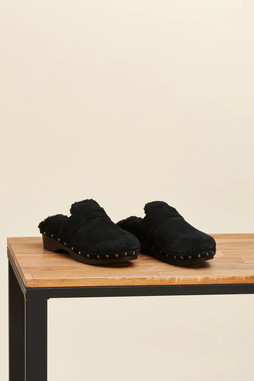 Sabots noirs en croûte de cuir de La Fée Maraboutée
