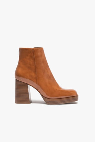 Bottes camel vernies à talons hauts avec bouts carrés de Gémo