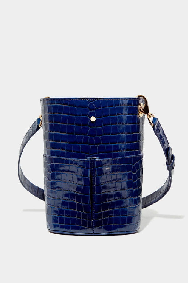 Sac à main en cuir embossé croco bleu © RSVP Paris