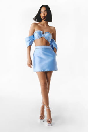 Jupe mini satinée bleu clair à strass de Nasty Gal