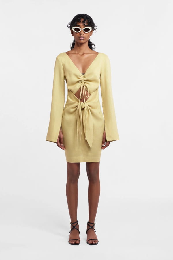 Robe jaune pâle froncée à l'avant "Gilia" de Nanushka