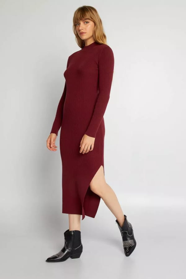 Robe moulante bordeaux en maille côtelée de Kiabi