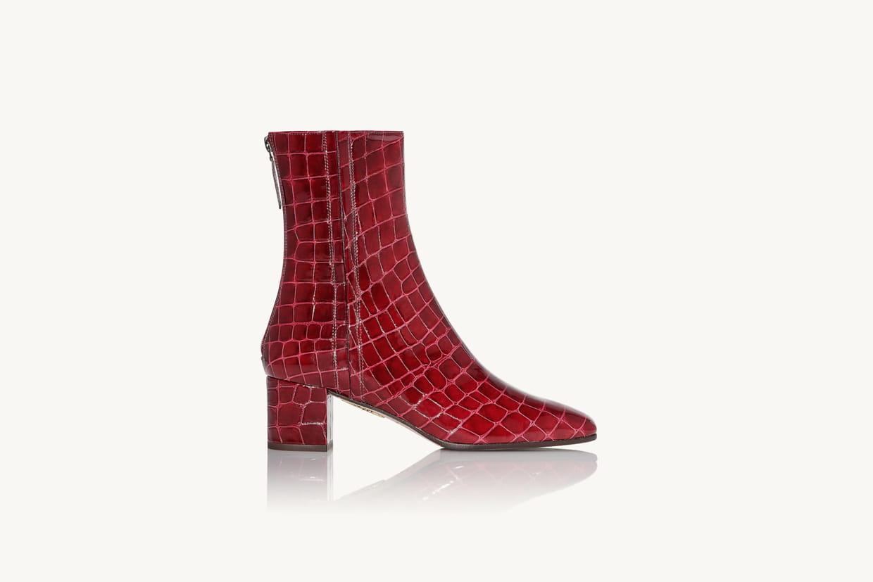 Bottines bordeaux en cuir croco "Groove Bootie 50" d'Aquazzura
