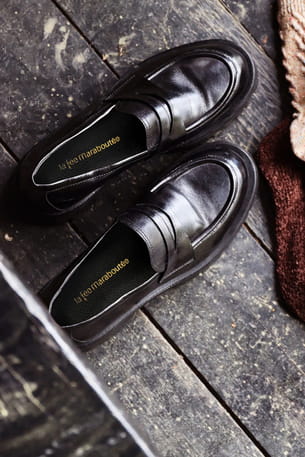 Mocassins en cuir de vachette noir de La Fée Maraboutée