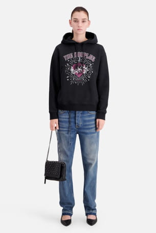 Sweatshirt noir à capuche avec sérigraphie "Dagger Through Heart" de The Kooples