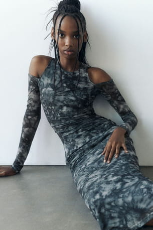Robe midi en tulle imprimée tie & dye © Pull & Bear