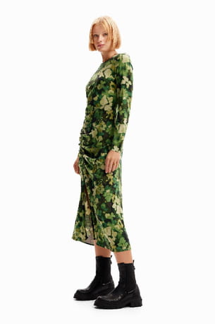 Robe midi froncée à fleurs vertes façon camouflage de Desigual