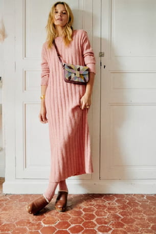 Robe bois de rose en baby alpaga "Manon" de Sézane