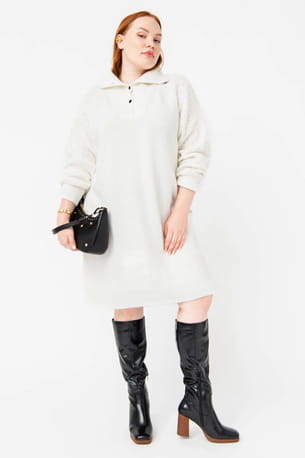 Robe pull écrue à col montant boutonné de Gémo