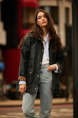Veste kaki et léopard "Lucie" de Balzac Paris x Barbour
