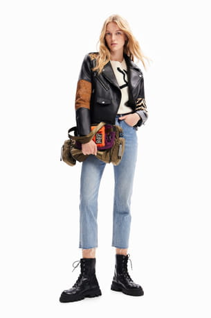Veste biker en cuir à empiècements patchwork de Desigual