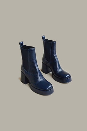 Bottines en cuir vieilli bleues à bouts carrés de Jonak
