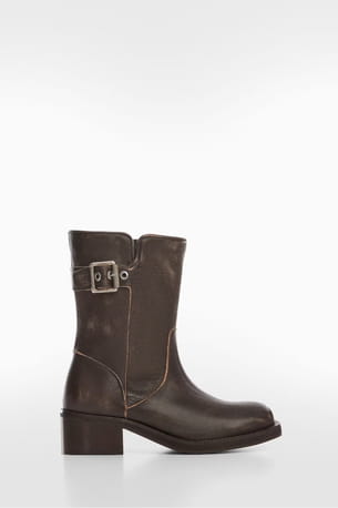Bottines effet usé en cuir à boucles de Mango