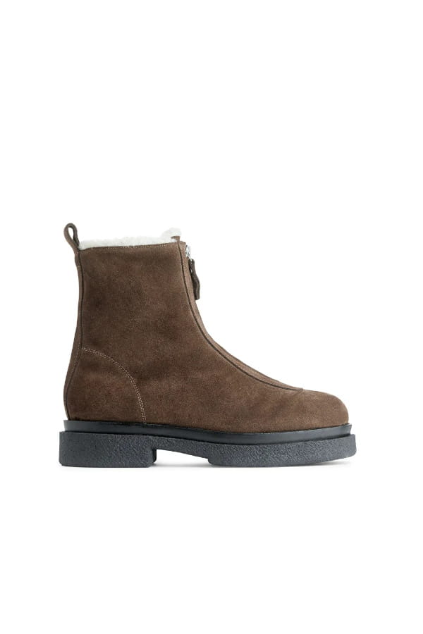 Bottines en cuir avec fausse fourrure et fermeture éclair d'Arket