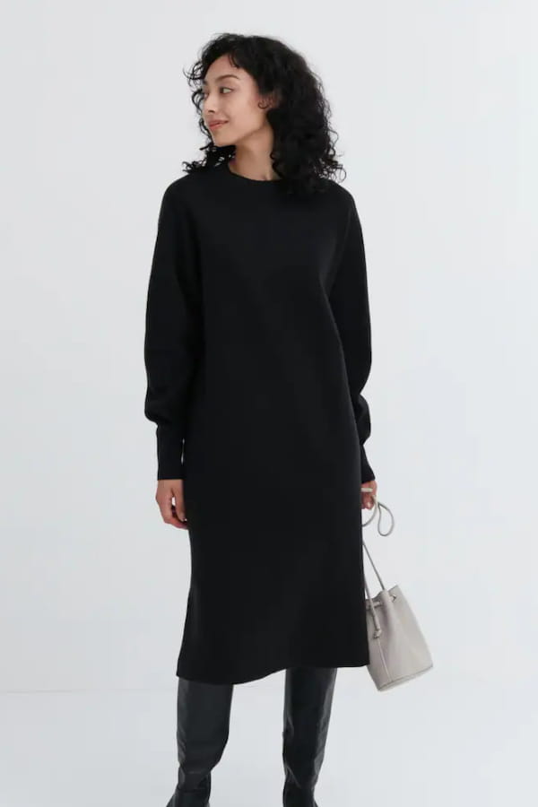 Robe noire en maille soufflée à manches longues d'Uniqlo