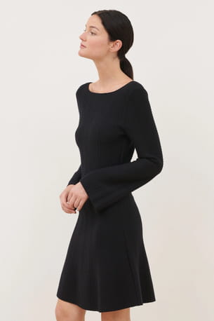 Robe noire à encolure bateau courte en laine mérinos de Comptoir des Cotonniers
