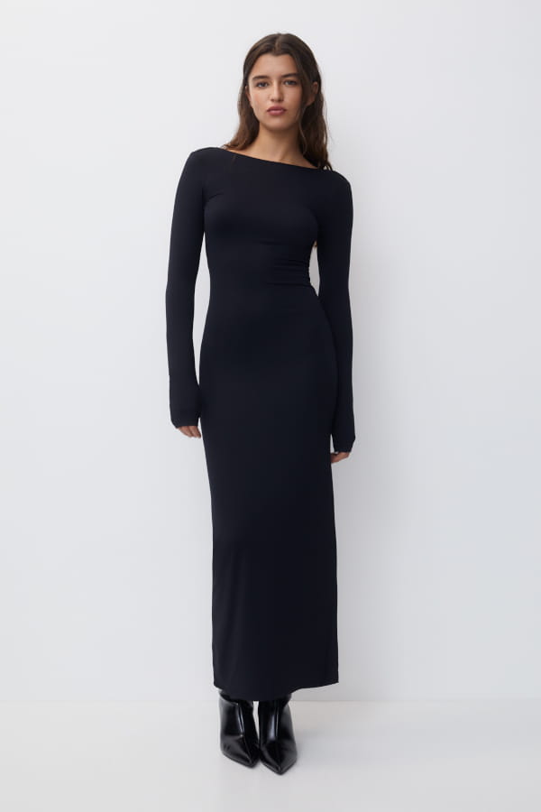 Robe noire longue dos nu en polyamide de Pull&Bear