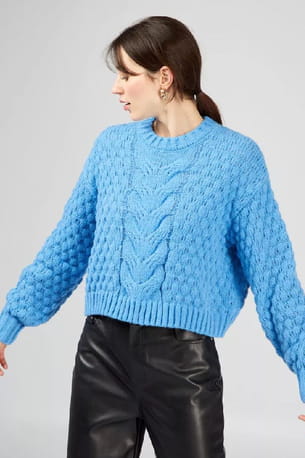 Pull bleu en maille épaisse tressée de Kiabi