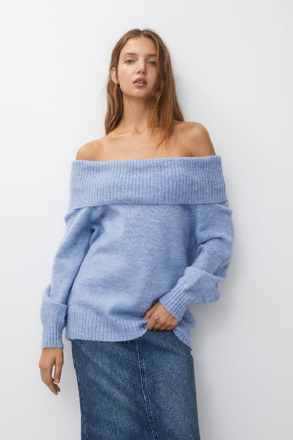 Pull à encolure Bardot bleu ciel de Pull & Bear