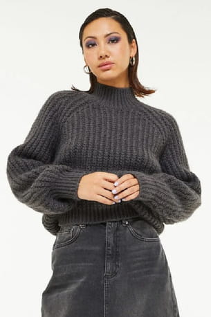 Pull à grosses mailles et col montant gris foncé de Pimkie