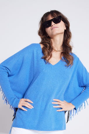 Pull poncho en cachemire bleu "Leandra" de Nothsy