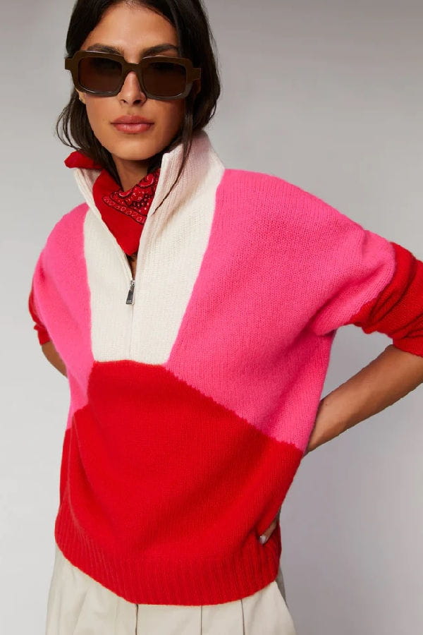 Pull en cachemire à col camionneur tricolore de From Future