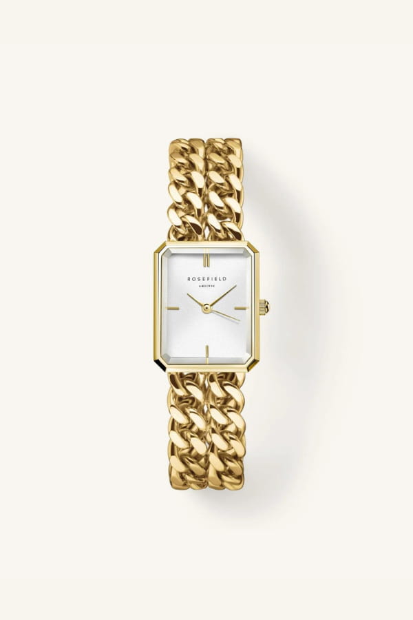 Montre dorée à chaînes au boîtier rectangulaire de Rosefield